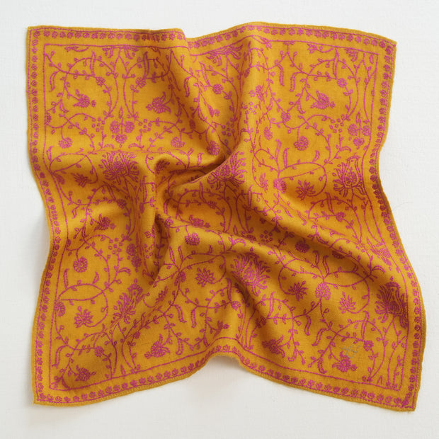Enhance your wardrobe with the timeless charm of our Sozni Hand-Embroidered Cashmere Pocket Squares. Immaculately crafted with the finest attention to detail, each piece showcases vibrant color combinations that add a sophisticated touch of color to your ensemble.