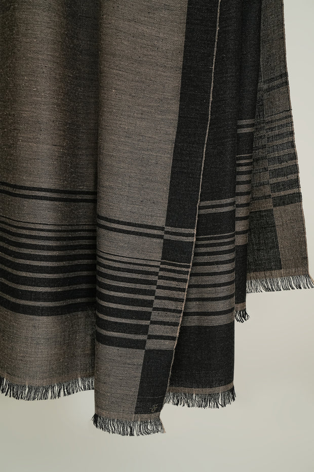 With just two colors, the thoughtful play of stripes and gradation gives this piece a striking dichromatic character. Its simplicity becomes its strength, creating a design that feels both inventive and visually balanced. Its modern reversible layout makes it especially versatile, lending itself effortlessly to everyday pairing while still feeling rooted in craft.