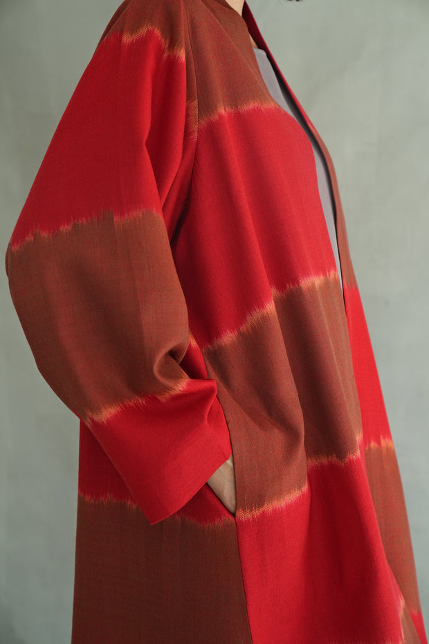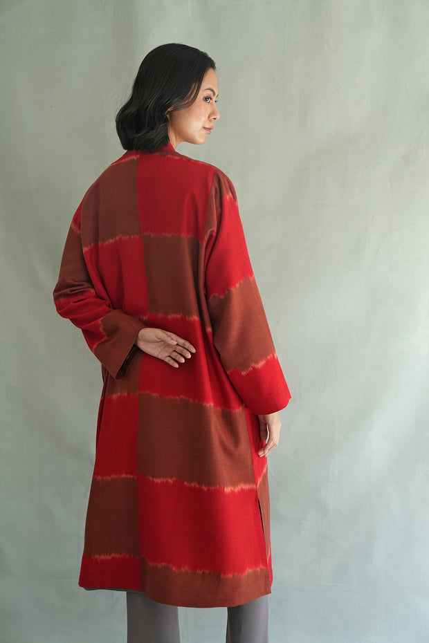 Ikat Tableau Cashmere Coat Beetroot Teak
