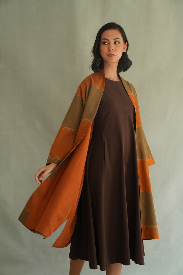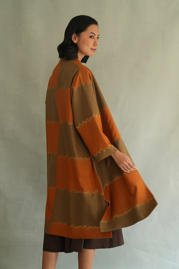 A new addition to our overcoat series, the Ikat Pashmina coat celebrates the coming together of two weaving traditions—the softness of pashmina and the precision of warp-faced ikat. The result is a piece that honors heritage while embodying a distinctly modern aesthetic.