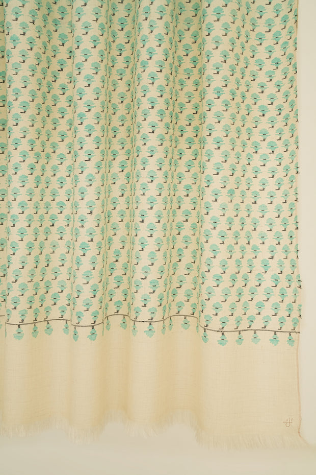 Kani Machi Butidar Hand Woven Pashmina Shawl Ivory