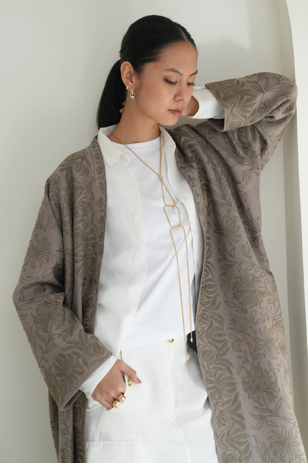 Aari embroidery is a traditional Kashmiri needlework technique known for its fine chain stitches that create detailed, flowing motifs with remarkable precision. Our wool aari choga collection marked a turning point in reviving the aari embroidery craft, once confined to shawls and threatened by the rise of machine-made imitations.