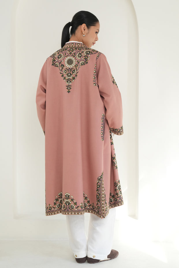 Poshmaal Hand Embroidered Wool Choga Rose Quartz