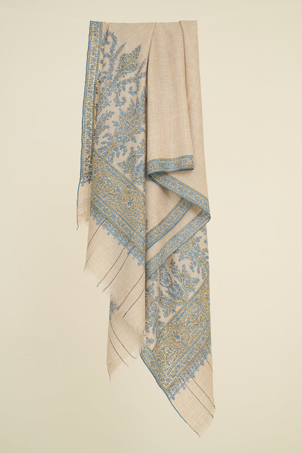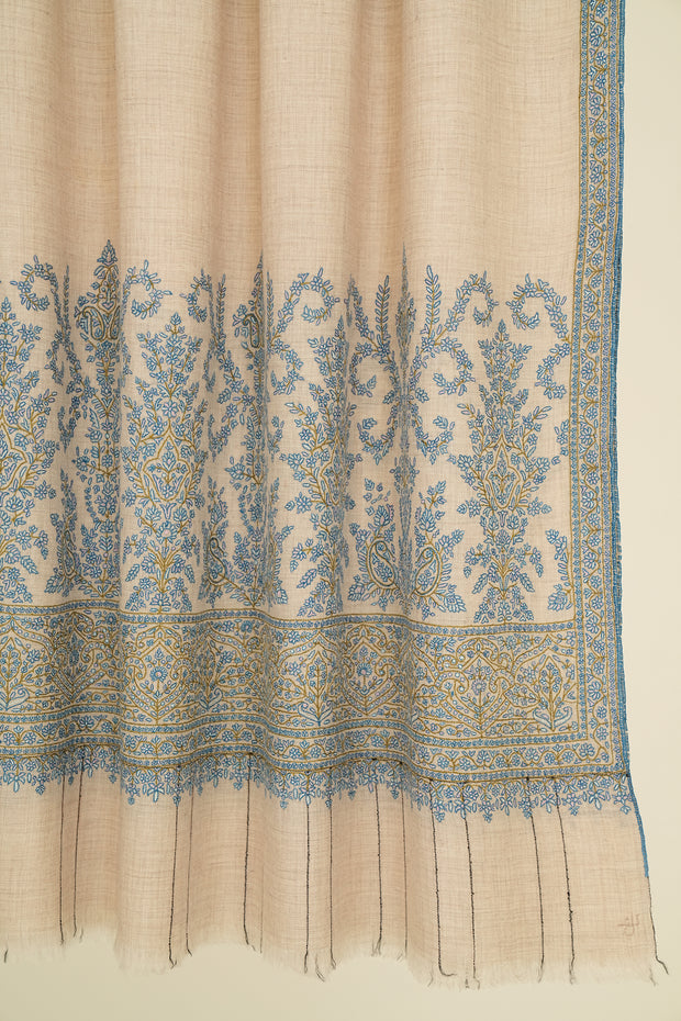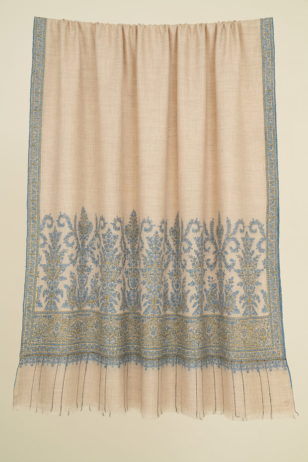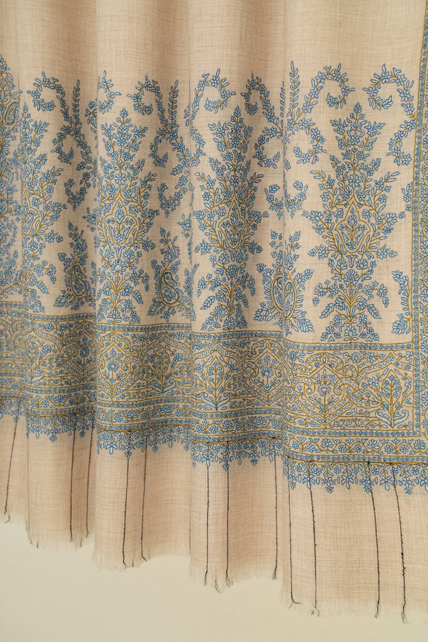 Sozni Palledar Hand Embroidered Pashmina Shawl Kuklihut Blue