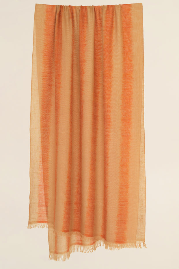 This contemporary stole is woven in a lightweight gauze structure, creating a fabric that is breathable, fluid, and suited for year-round wear. Crafted in fine cashmere, the open weave lends the textile a soft translucency while maintaining warmth without weight, reflecting a balance between material delicacy and functional versatility.