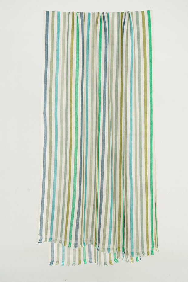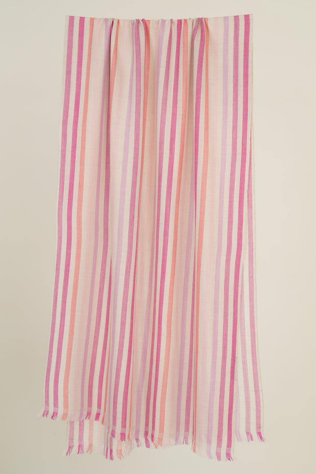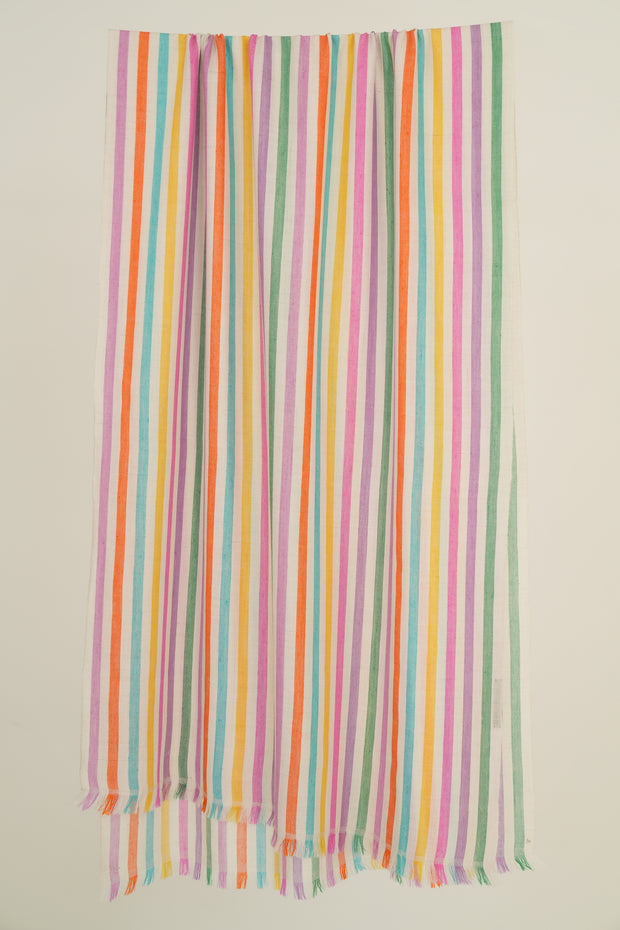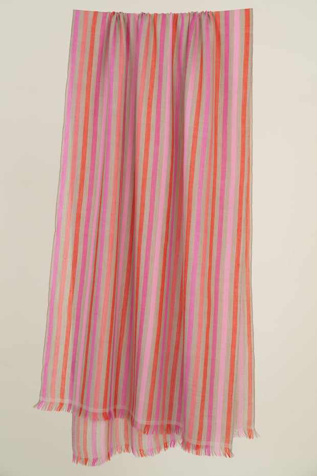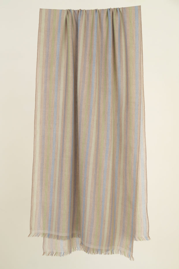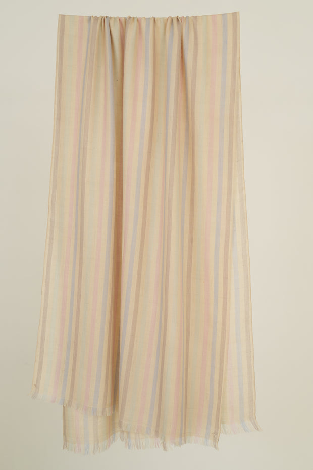 Opera, as the name suggests is a beautiful orchestration of colors in the stripes carefully blended with either our natural or ivory un-dyed cashmere. Twill weave stripe.