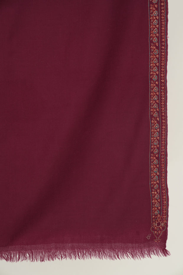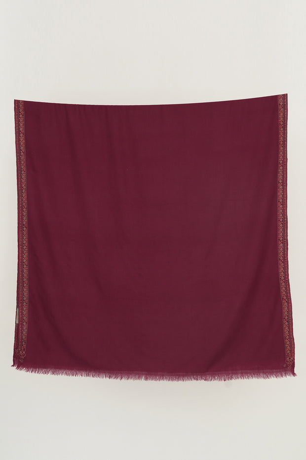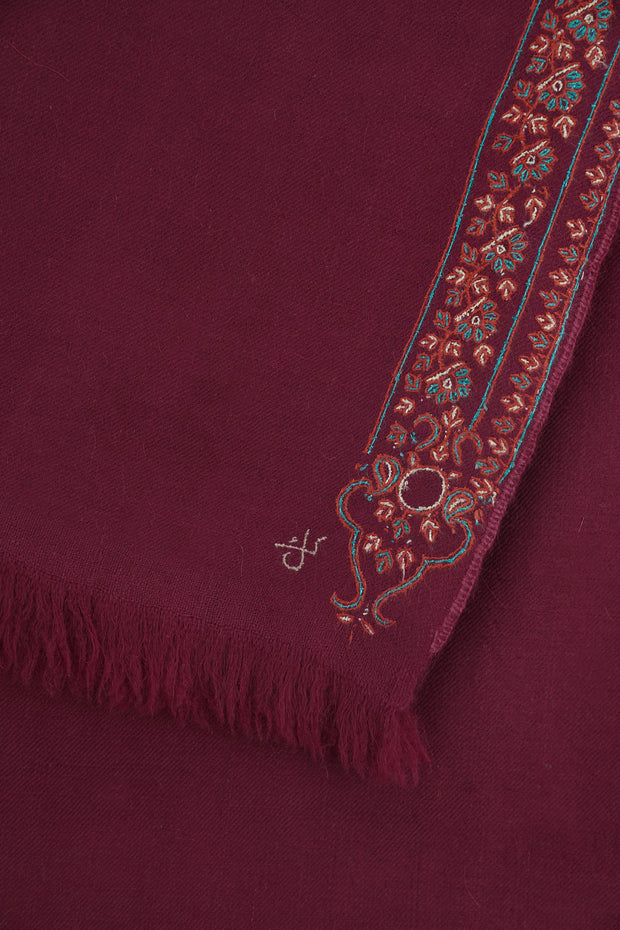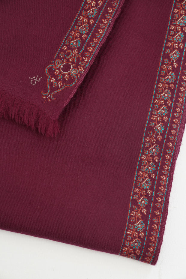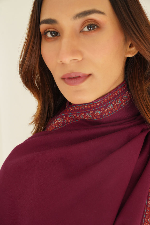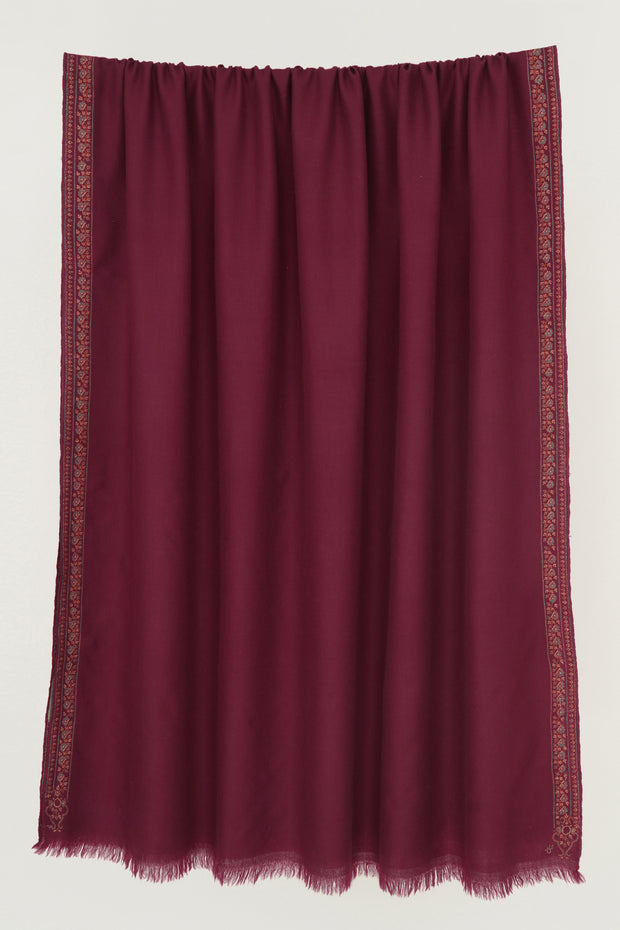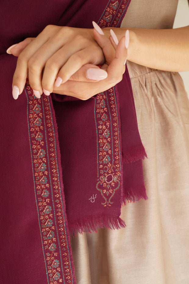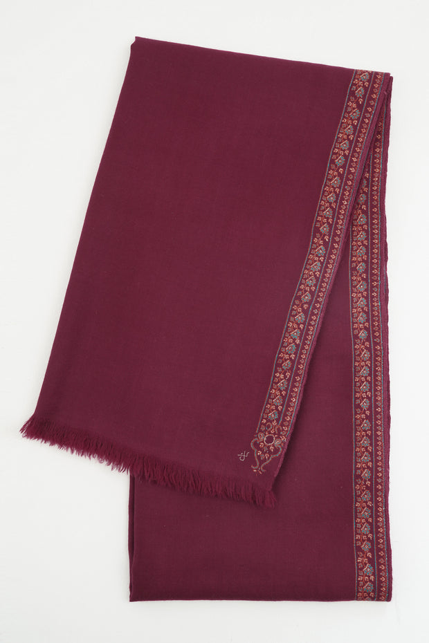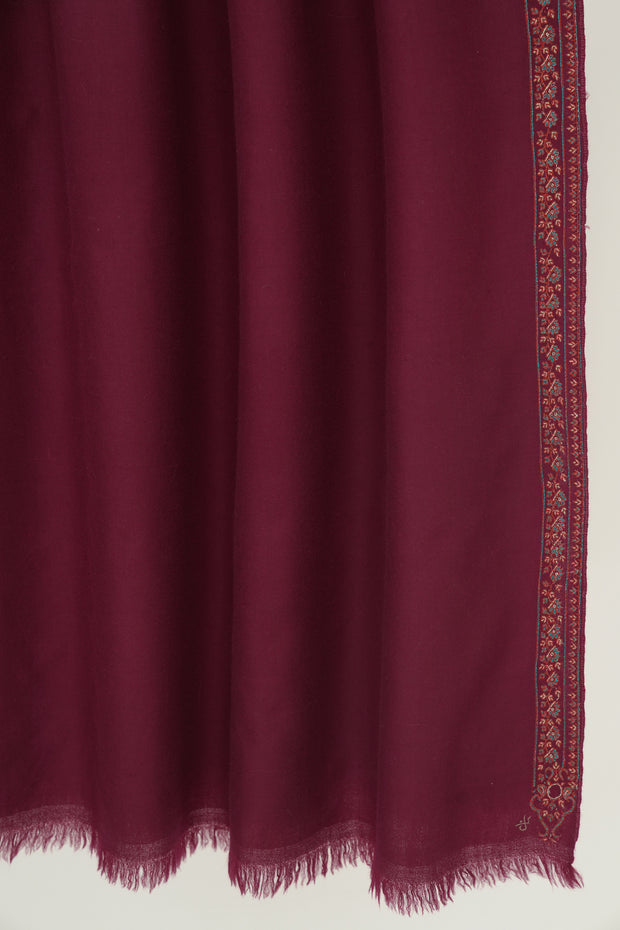 Sozni Gulbaan Edge Bail Hand Embroidered Pashmina Shawl Cabernet