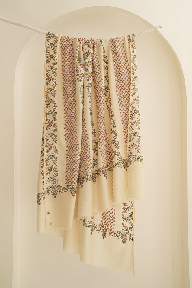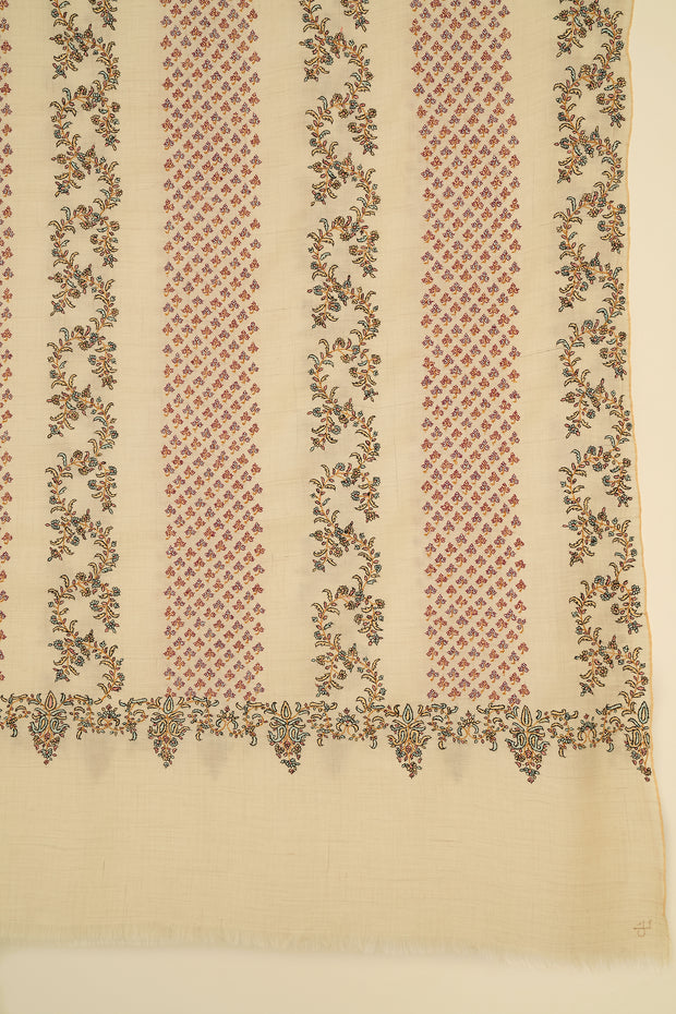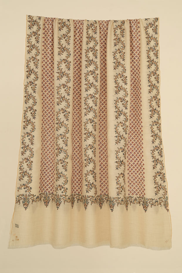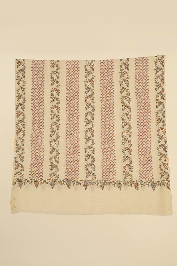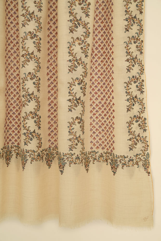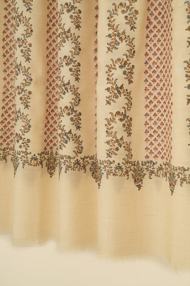 Sozni Khatrast Hand Embroidered Pashmina Shawl Ivory