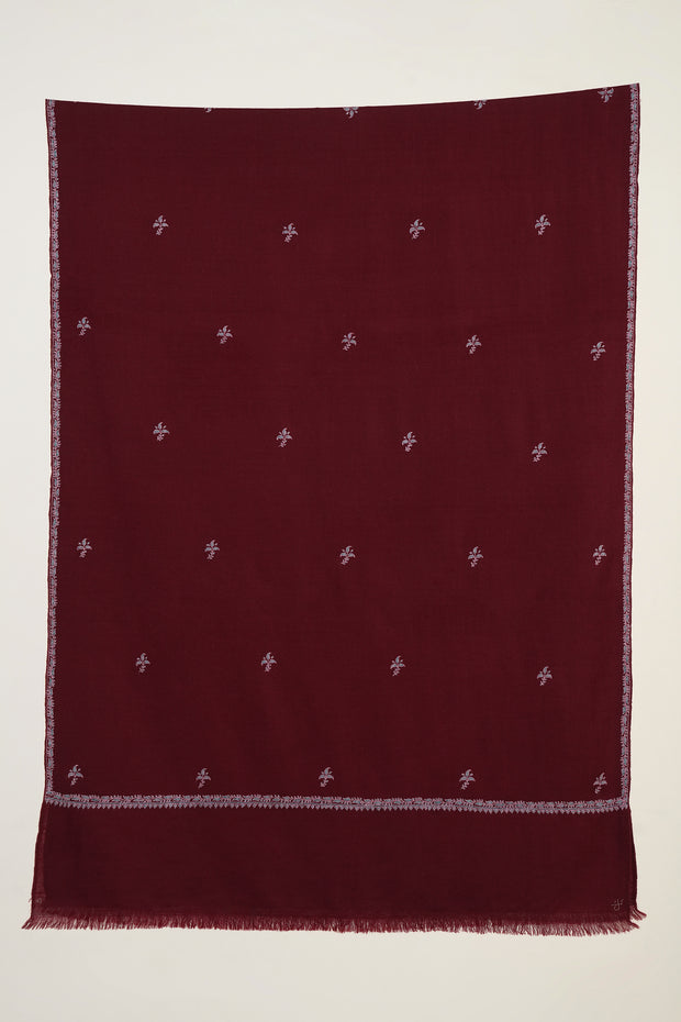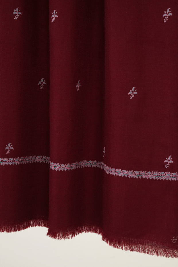 Sozni Paisley Bail Buti Hand Embroidered Pashmina Stole Cherry