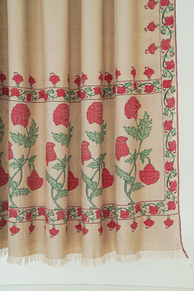 IMAGE: Brimposh Palledar Ivory Shawl with Sozni hand-embroidery, 137x274 cms, by Kashmir Loom