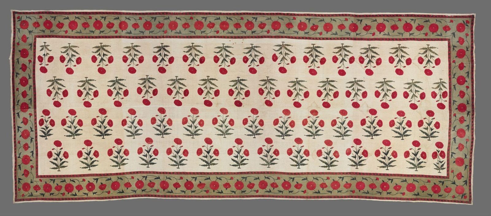 IMAGE: Poppy floor spread, or ‘summer carpet’ , mordant and resist on cotton, c. 1650 CE, The Victoria and Albert Museum, London. IM.77-1938. © The Victoria and Albert Museum