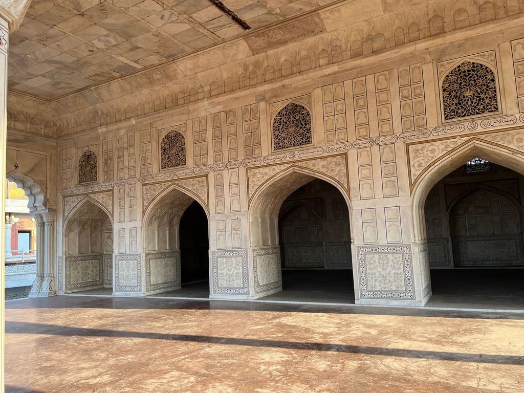 IMAGE: Carved floral dadoes inside the Diwan-i Khāss, Agra Fort, Agra. © Jordan Quill