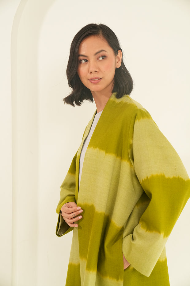 A new addition to our overcoat series, the Ikat Pashmina coat celebrates the coming together of two weaving traditions—the softness of pashmina and the precision of warp-faced ikat. The result is a piece that honors heritage while embodying a distinctly modern aesthetic.